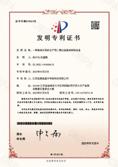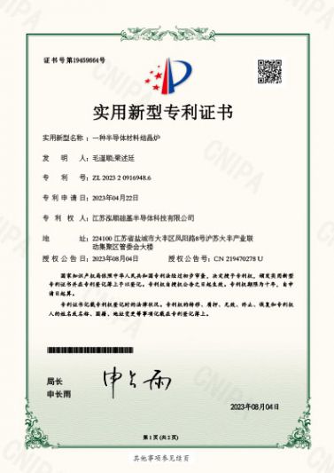 ? 近期,江蘇泓順硅基半導(dǎo)體科技有限公司接連獲得5項(xiàng)專利授權(quán),其中3項(xiàng)發(fā)明專利,2項(xiàng)實(shí)用新型專利。公司已累計(jì)獲得專利授權(quán)16項(xiàng),其中發(fā)明專利11項(xiàng),實(shí)用新型專利...